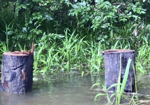 Based on local knowledge, the placement of all the logs driven vertically in the area of the fish refuge would provide excellent fish habitat. After experimenting with this technique, it was agreed that this method provided the desired habitat (or better) and would remain in place until the logs rotted away.